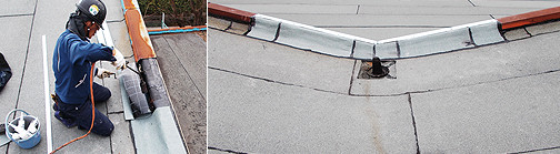 アスファルト成分とゴム成分を混合した冷工法専用ルーフィングを貼り付けて防水層を形成する工法です。
